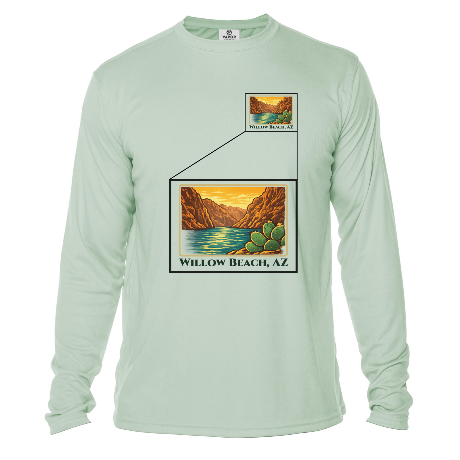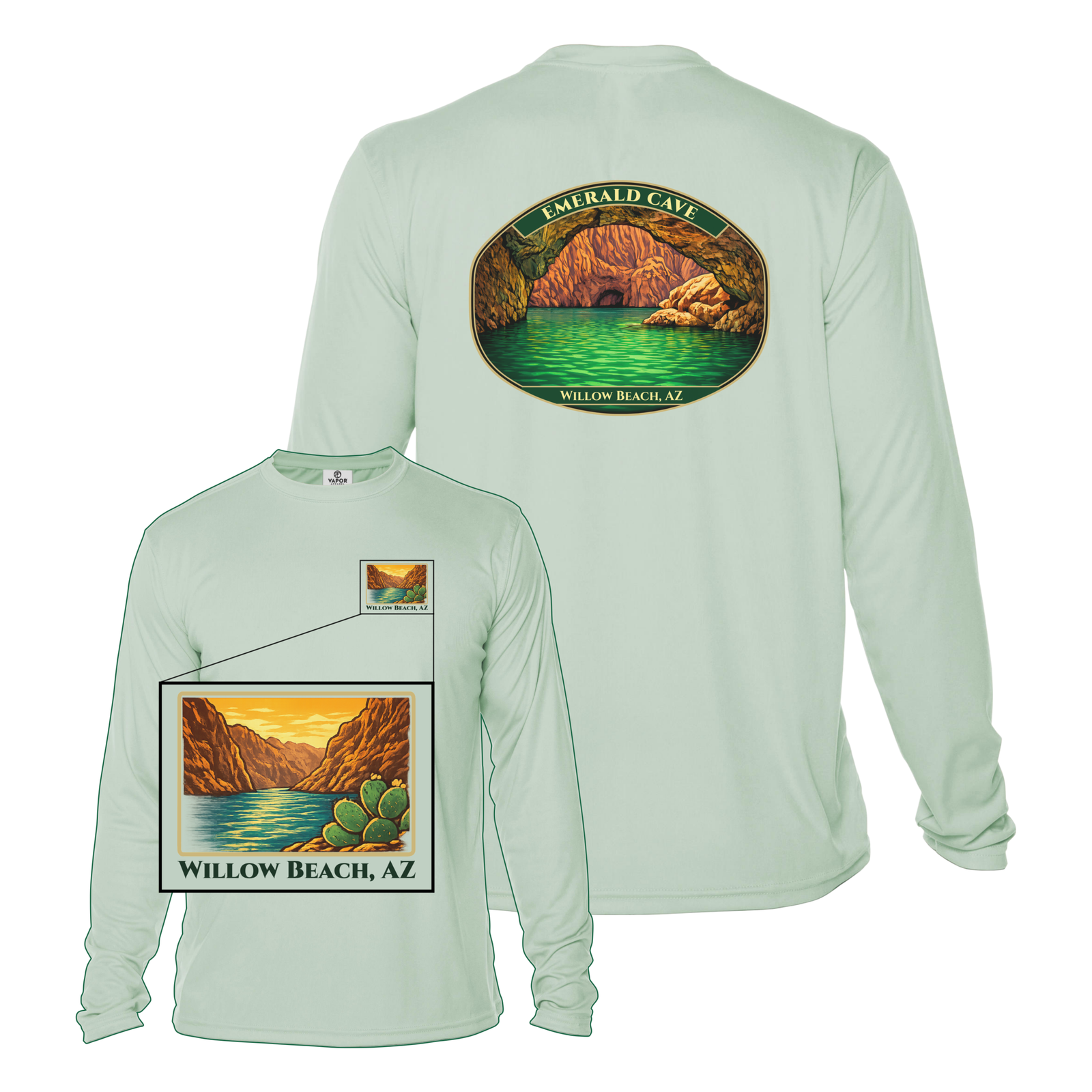 Finished with bold Emerald Cave artwork on the back and a clean Willow Beach piece on the front. This shirt is meant to handle the heat on and off the river.