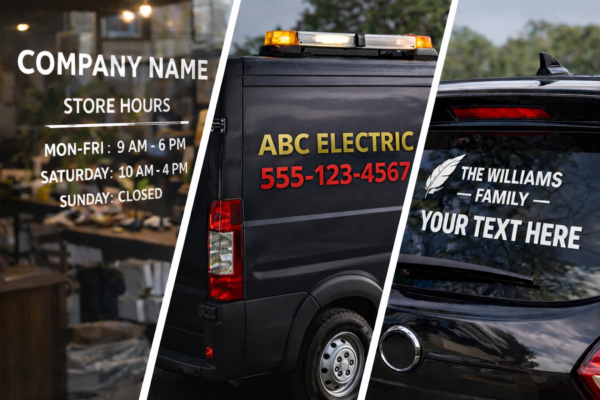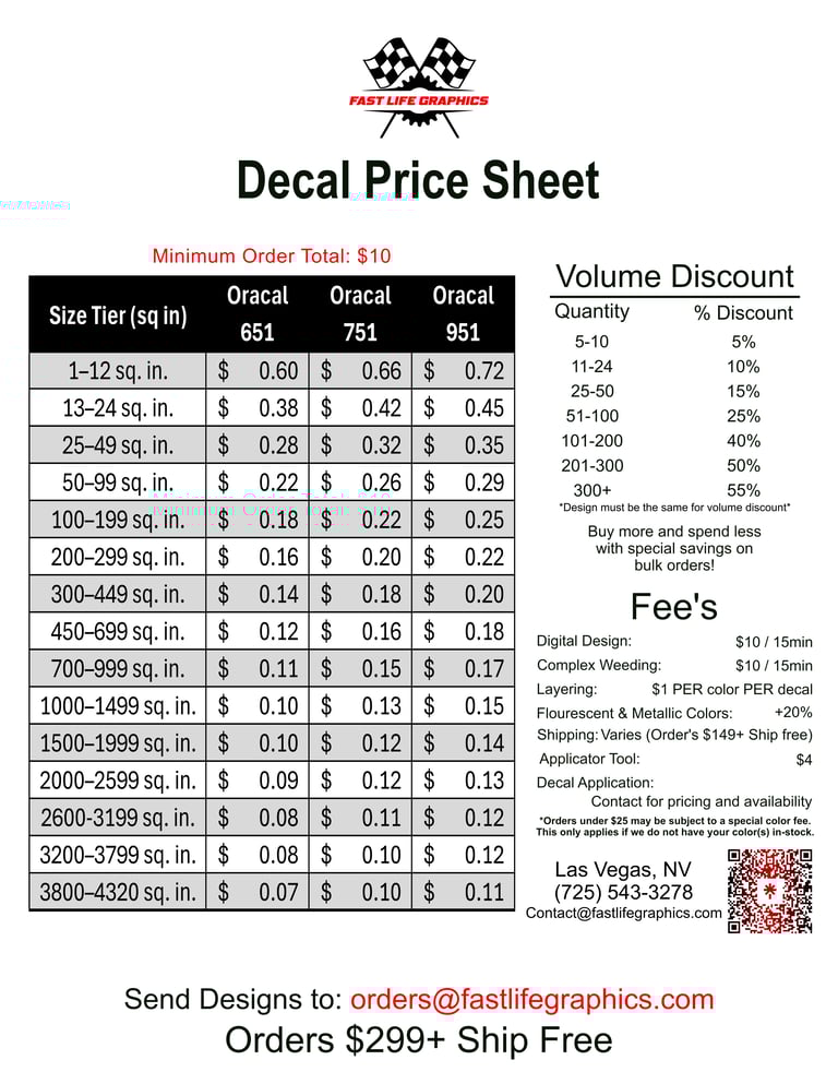 From business storefronts to fleet branding and custom product labels, our decals deliver sharp, long-lasting results your customers will notice. Whether you’re outfitting a company vehicle, promoting your brand, or adding a clean race-inspired touch, we produce high-quality vinyl decals built to perform.